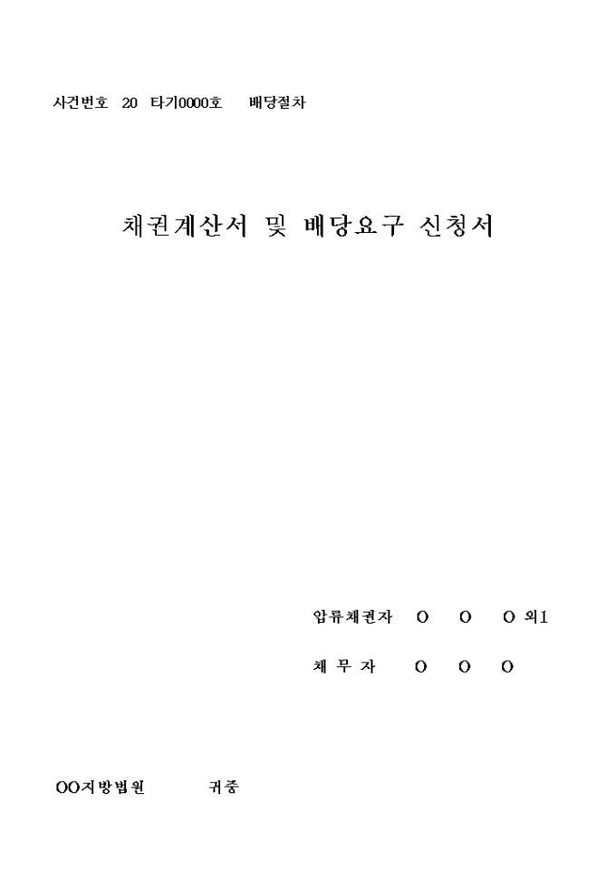 9,000원/월채권계산서 및 배당요구 신청서 표지입니다.