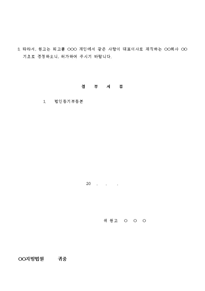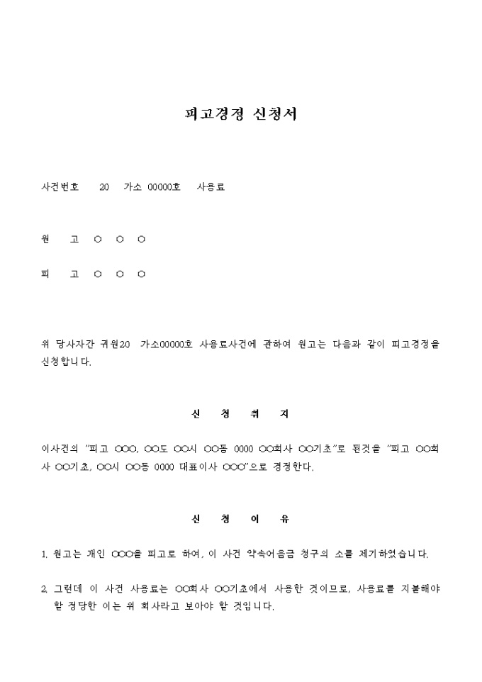9,000원/월사용료 청구사건의 피고가 잘못 지정되어 그 피고의 경정을 신청하는 서식입니다.