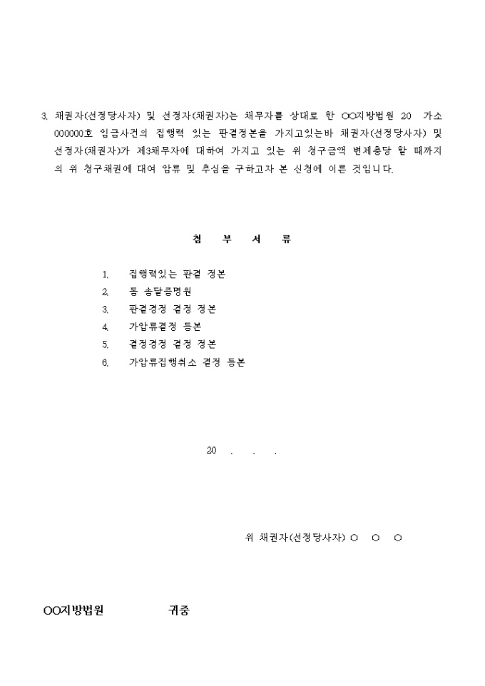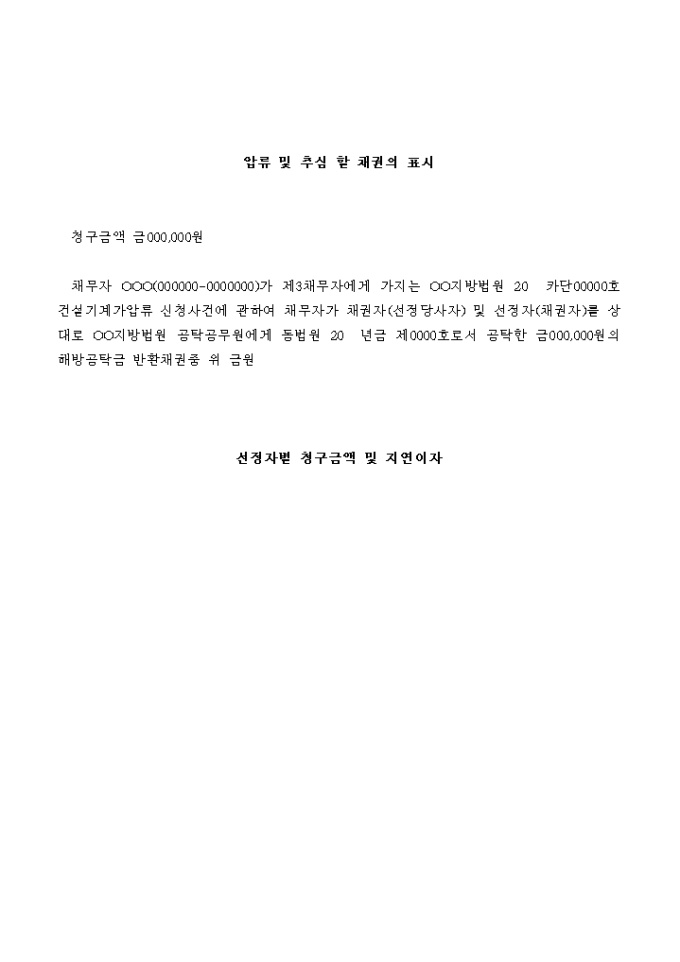 9,000원/월가압류로부터 본압류로 전이하는 채권압류 및 추심명령입니다.