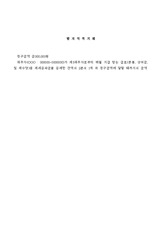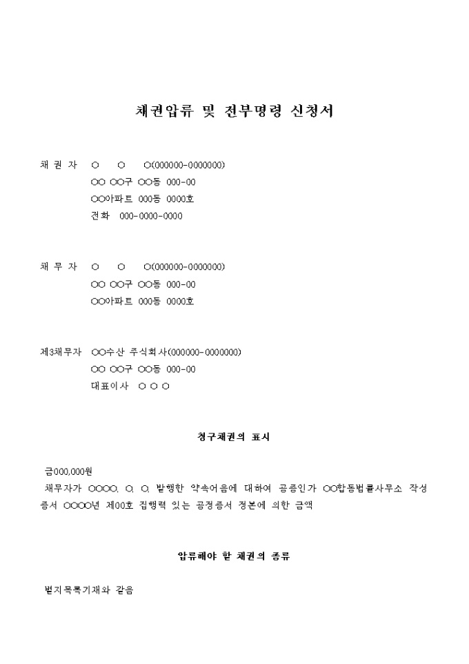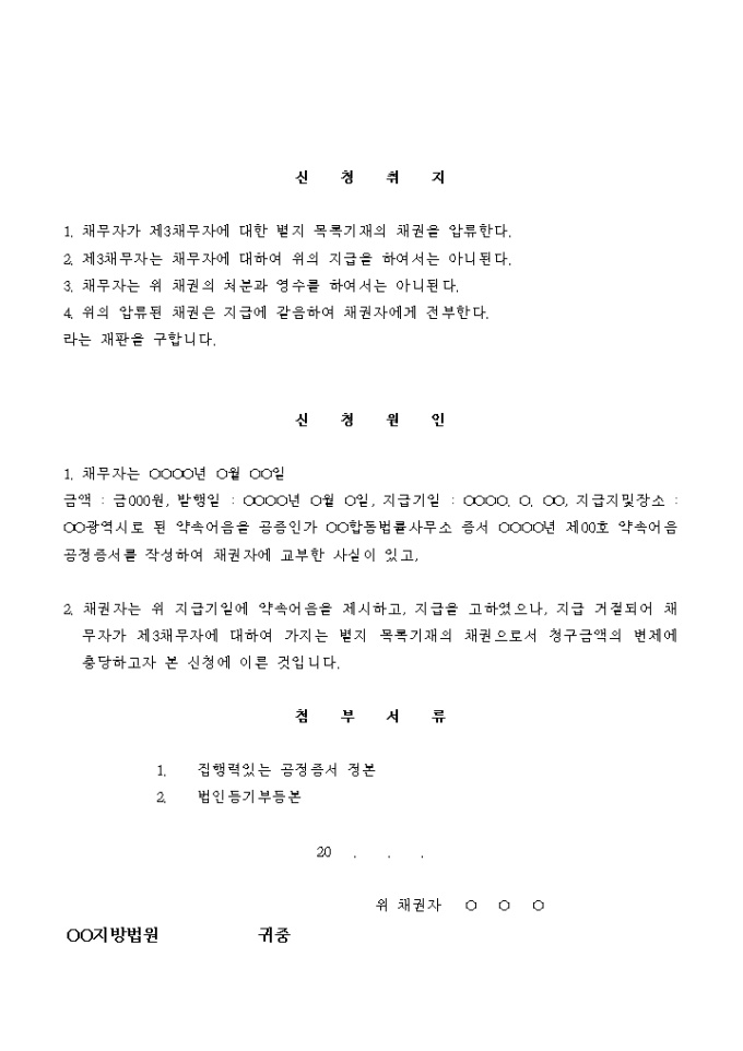 9,000원/월약속어음 채권을 보전하기 위한 채권압류 및 전부명령 신청서입니다.