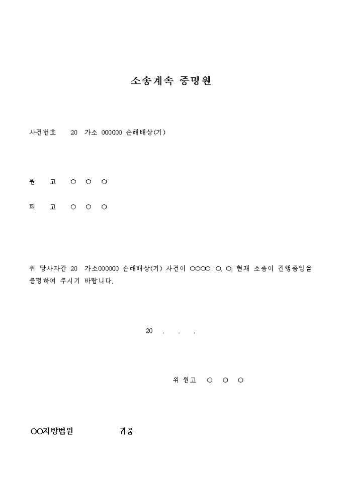 소송계속 증명원(손해배상)