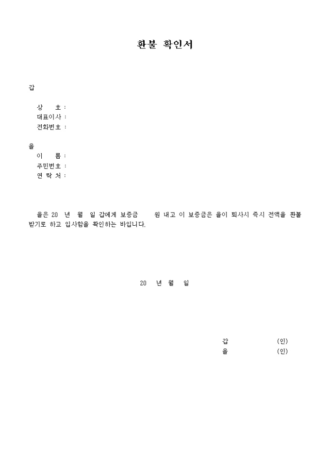 입사시 낸 보증금을 퇴사시 환불받는다는 조건으로 입사함을 확인하는 내용입니다.