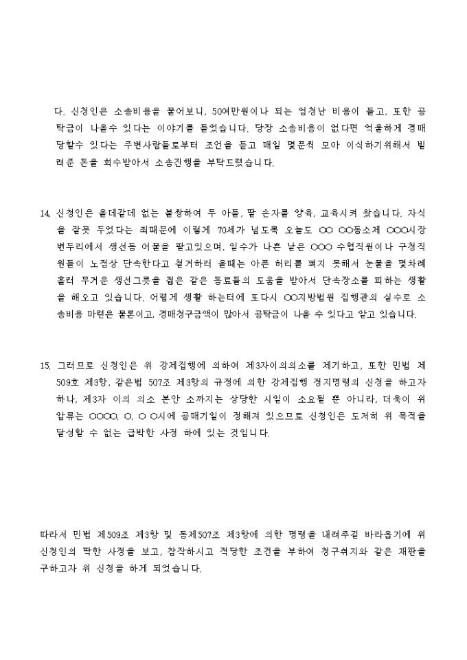 강제집행 정지결정 신청서(집행물이 채무자의 것이 아닌 경우)