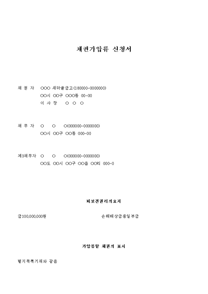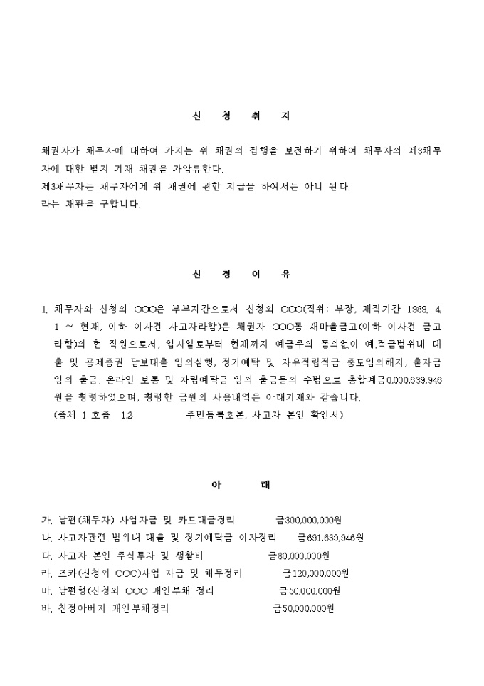 채권가압류 신청서(손해금_횡령)