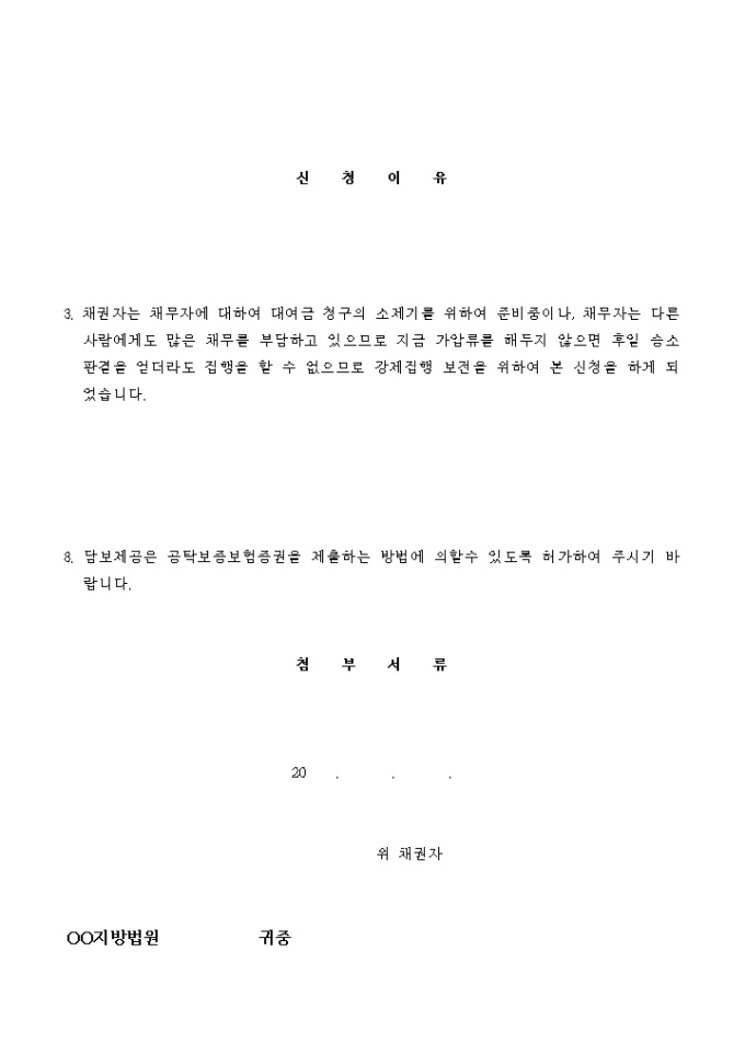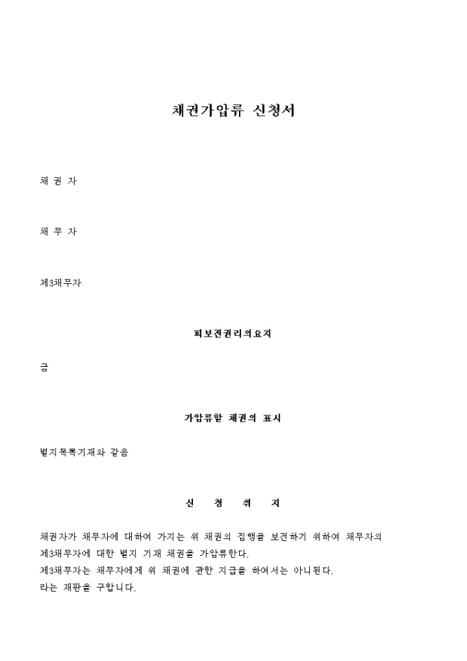 9,000원/월채권가압류 신청서의 기본 양식입니다.