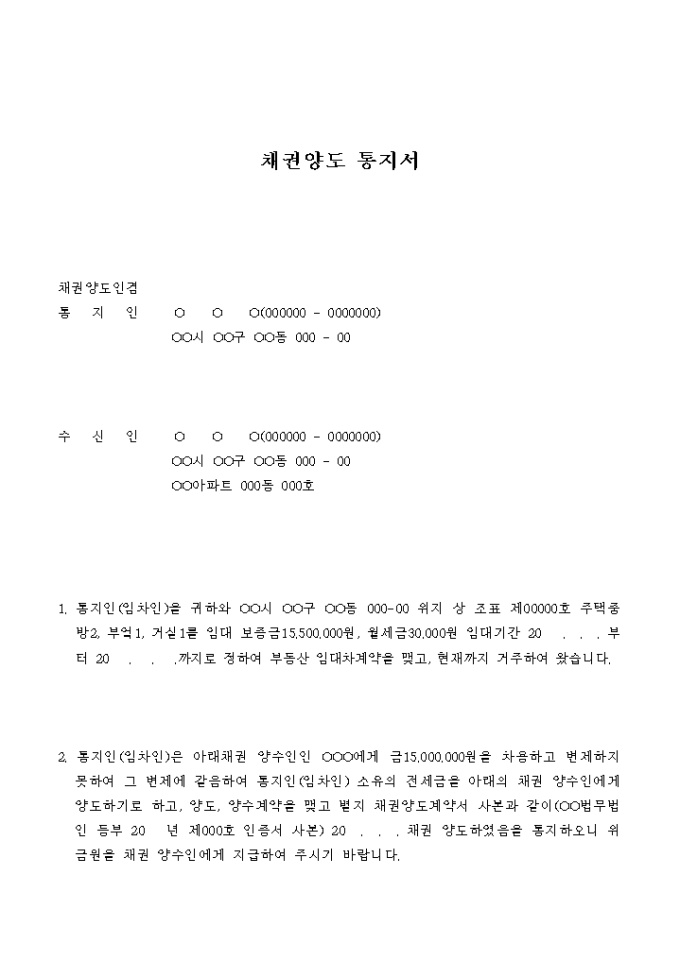 채권양도 통지서(전세금 반환채권)