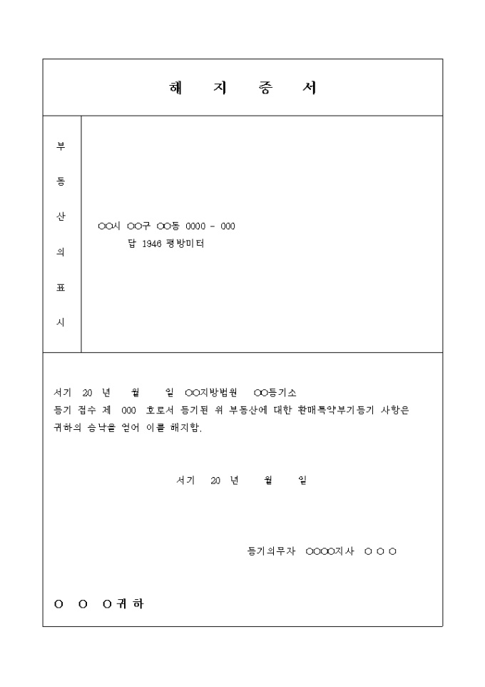 9,000원/월토지의 환매특약부기 말소 해지증서입니다.