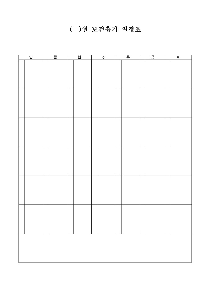 한달간 보건휴가 일정을 기록할 수 있는 양식입니다.