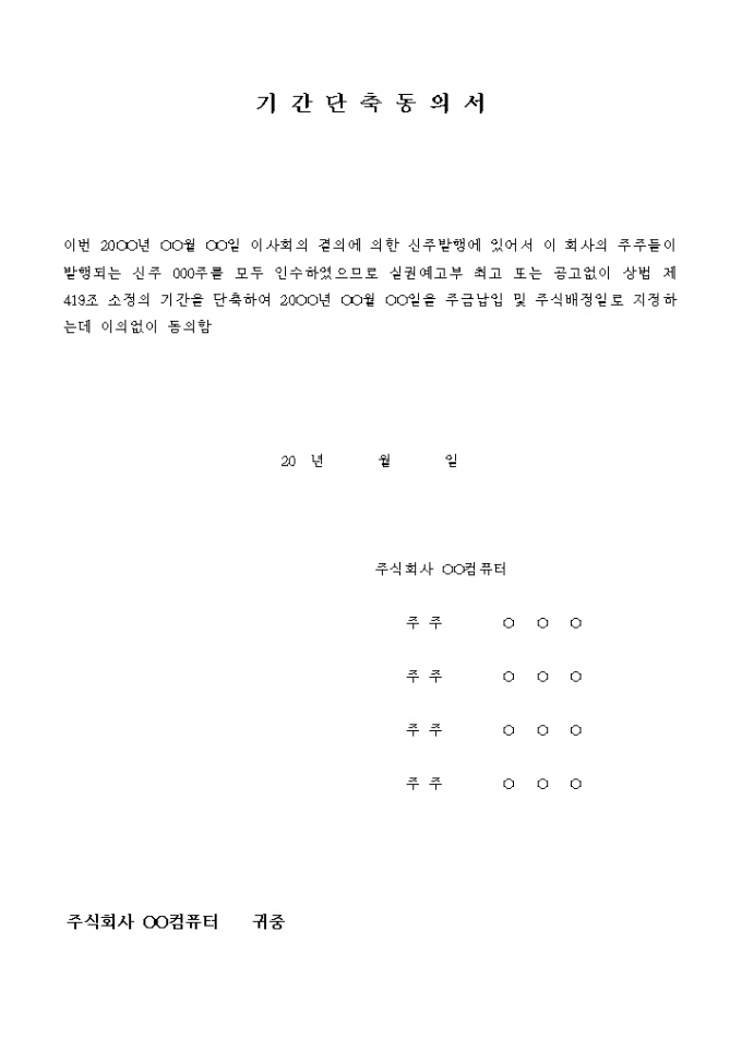 기간단축동의서(증자)