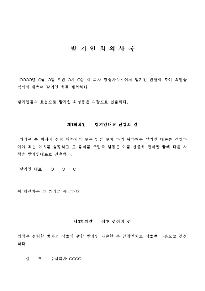 9,000원/월회사의 창립을 위한 발기인회 의사록입니다.