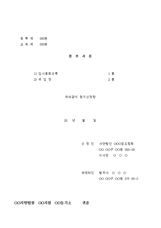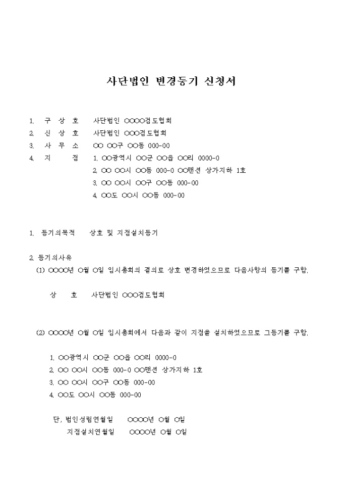 사단법인 변경등기 신청서(상호 및 지점설치등기)