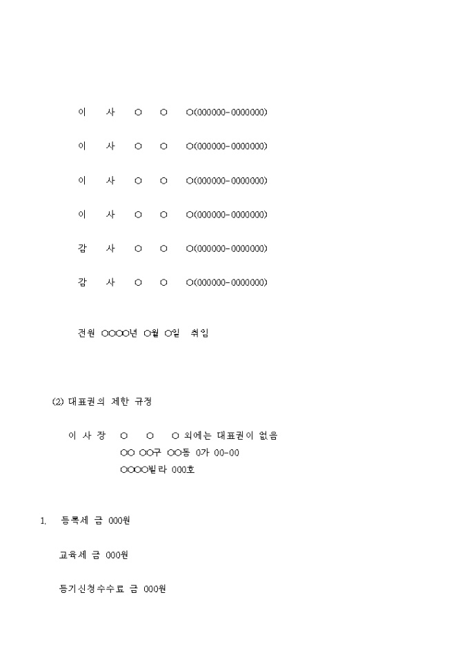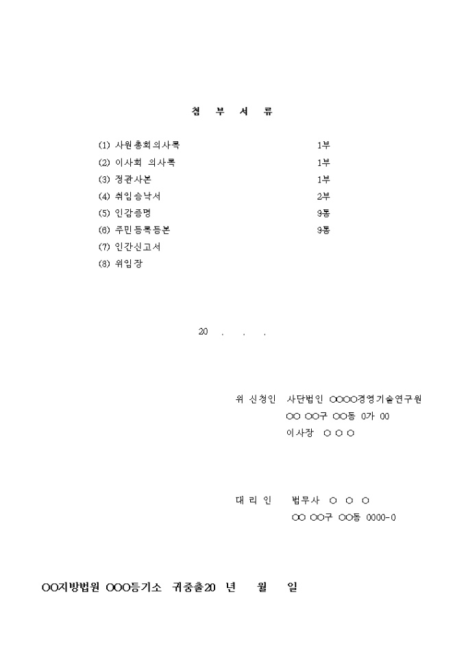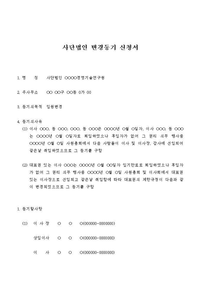 9,000원/월임원변경을 위한 사단법인 변경등기 신청서입니다.