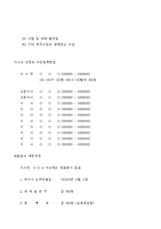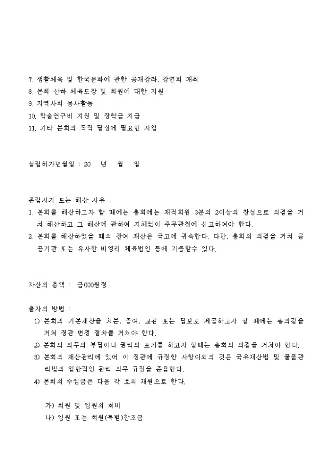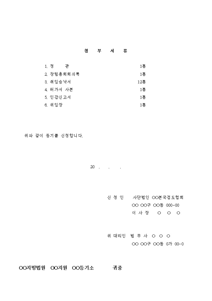 9,000원/월사단법인의 설립등기 신청서입니다.