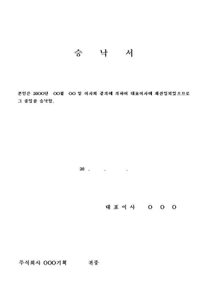 9,000원/월대표이사직을 승낙함을 확인하는 승낙서입니다.