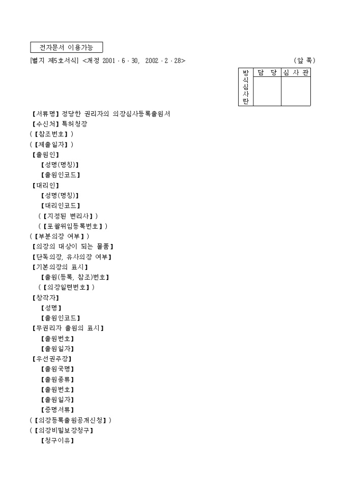 [별지 제5호서식]정당한 권리자의 의장심사등록 출원서는