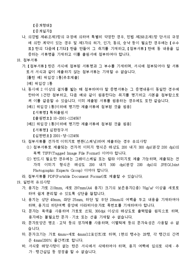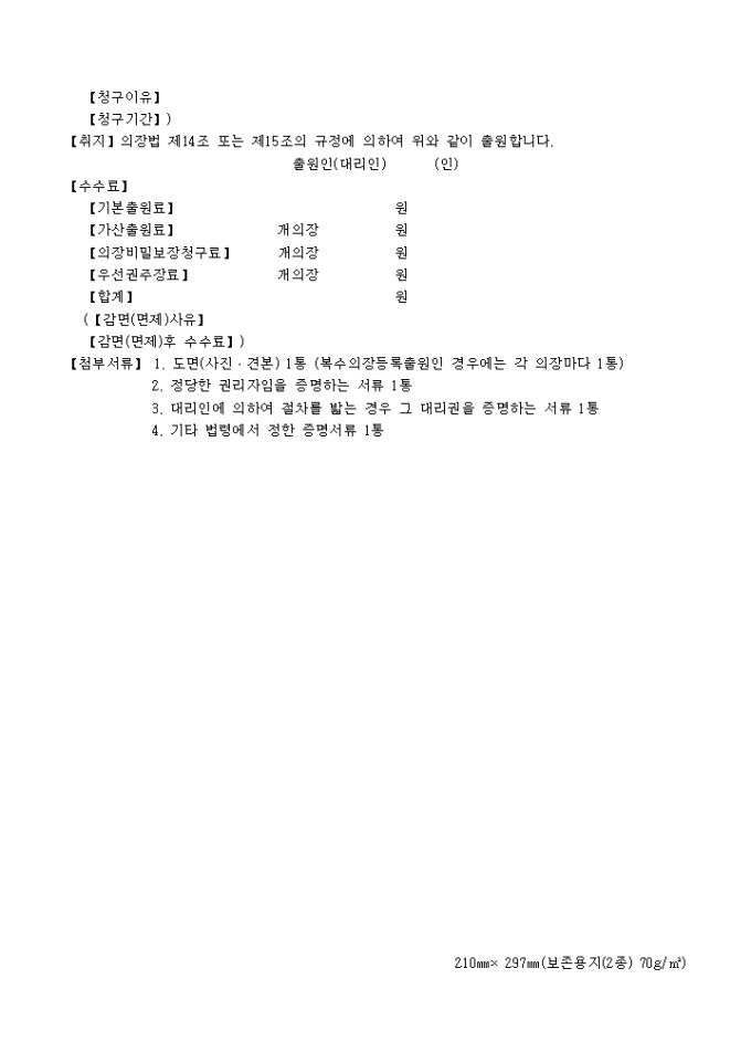 대리인에 의하여 절차를 밟는 경우 그 대리권을 증명하는 서류 1통, 기타 법령에서 정한 증명서류 1통이 필요합니다.