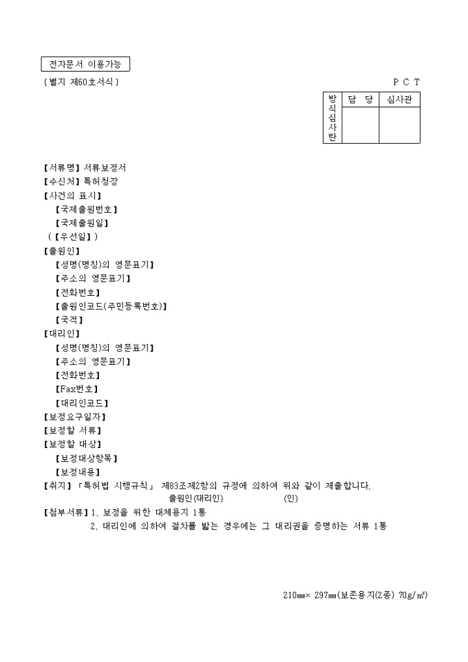 서류보정서(별지 제60호)