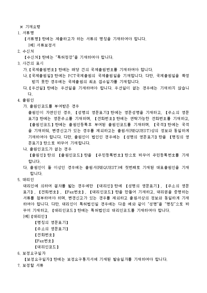 이 서식은 [별지 제60호]서류보정서로서 보정을 위한 대체용지 1통 대리인에 의하여 절차를 밟는 경우에는 그 대리권을 증명하는 서류 1통이 필요합니다.