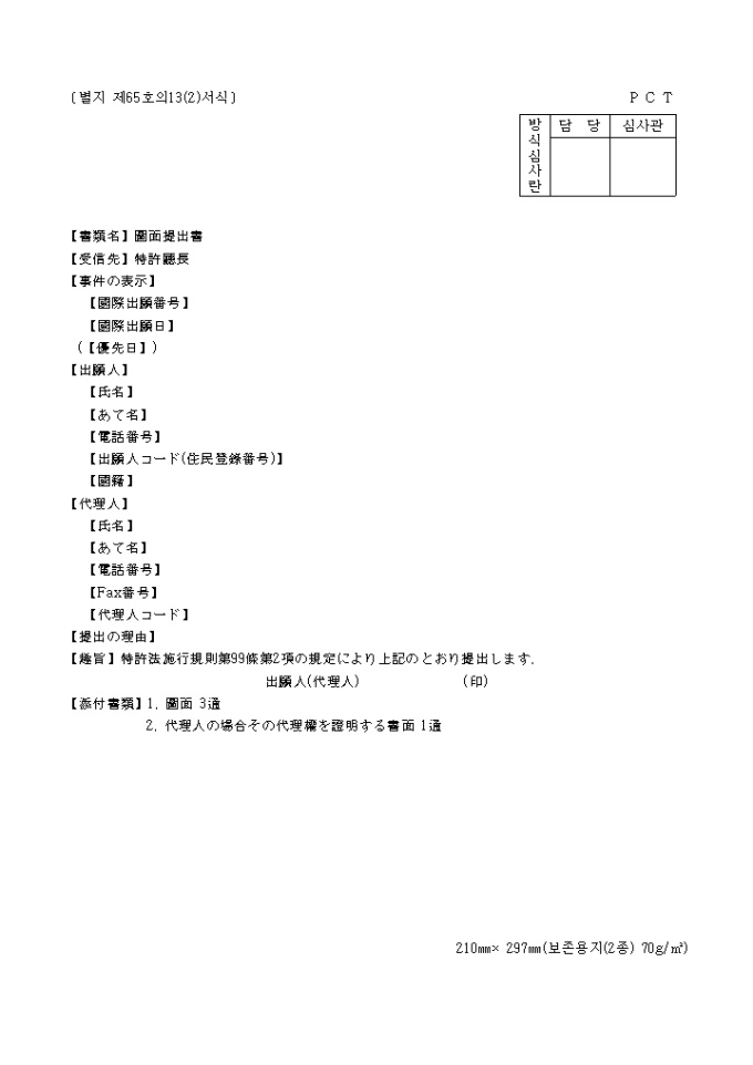 9,000원/월이 서식은 [별지 제65호13(2)]도면제출서로서 일어(한문)으로 작성되어 있습니다.