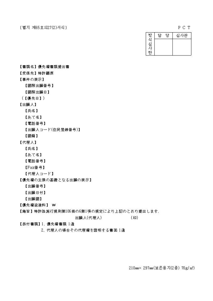 우선권서류제출서(일어(별지 제65호27(2)