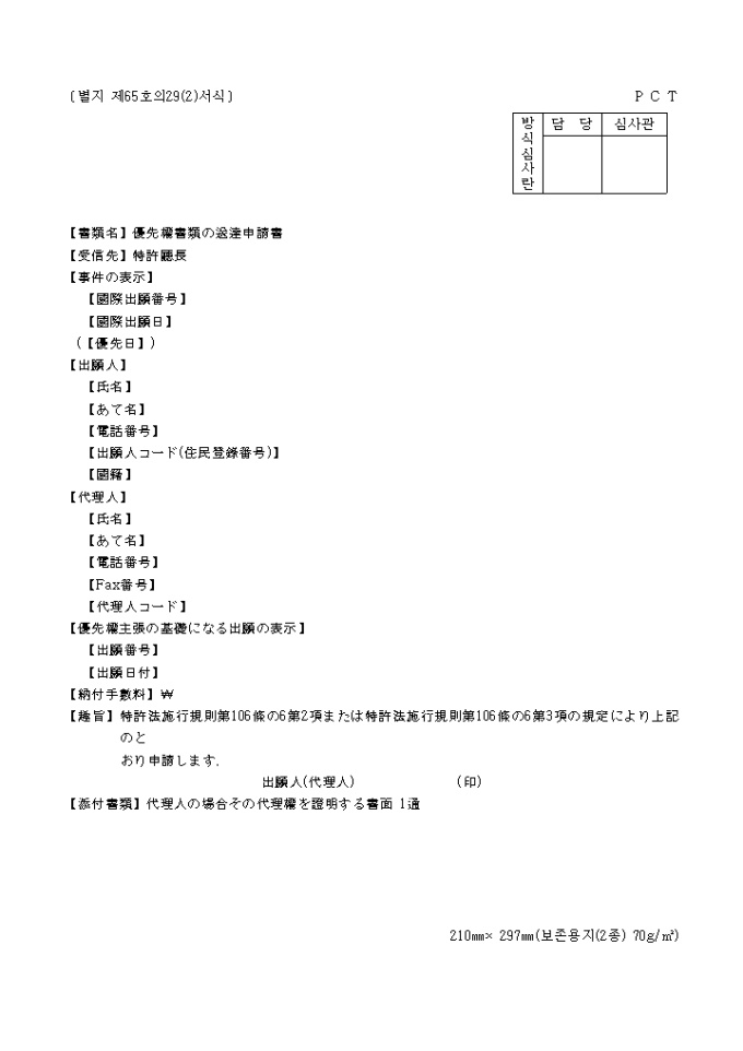 우선권서류의송달신청서(일어(별지 제65호29(2)