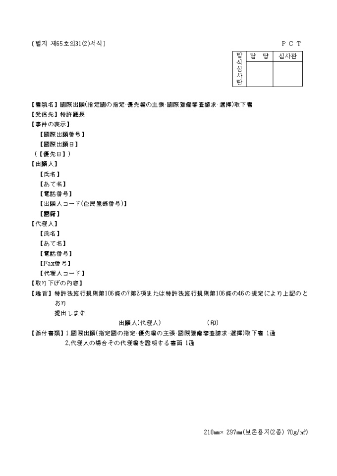 국제출원취하서(일어(별지 제65호31(2)