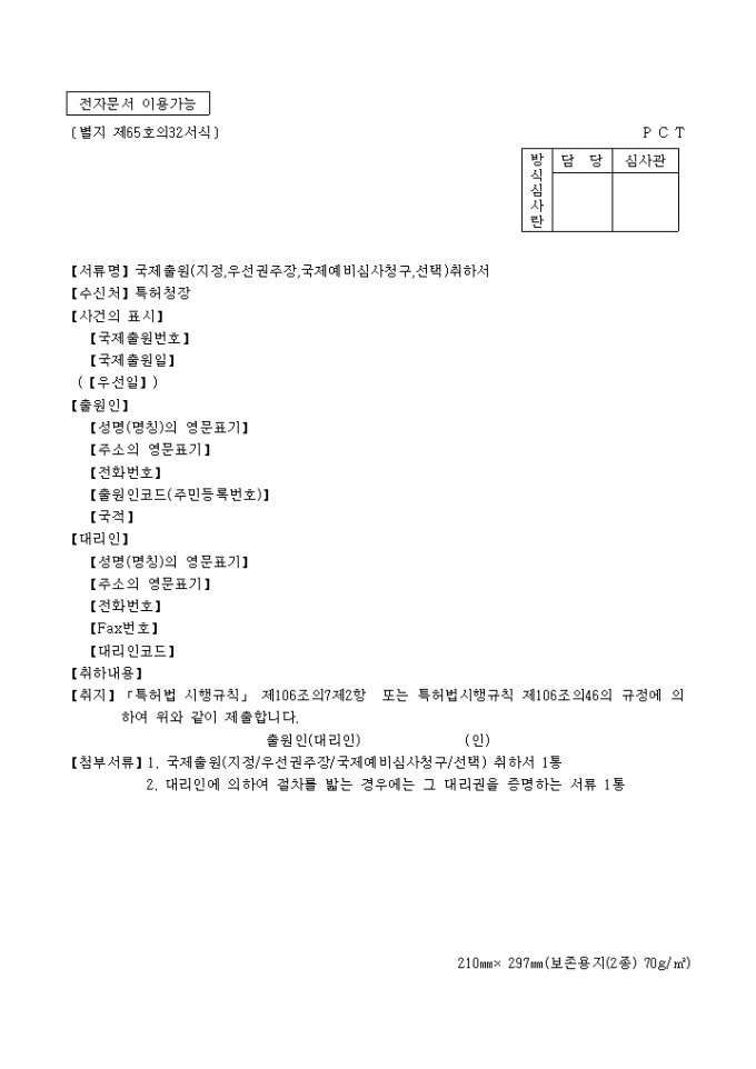 국제출원(지정, 우선권주장, 국제예비심사청구, 선택)취하서(별지 제65호32)