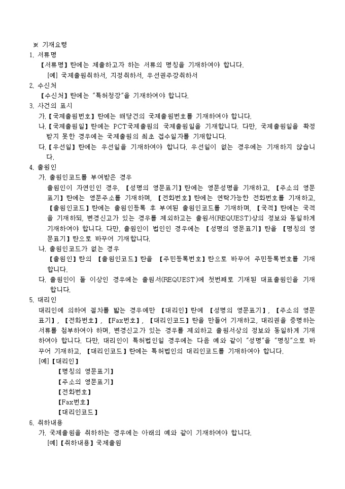 이 서식은 [별지 제65호32]국제출원(지정,우선권주장,국제예비심사청구,선택)취하서로서 필요한 서류로는 국제출원(지정/우선권주장/국제예비심사청구/선택) 취하서 1통, 대리인에 의하여 절차를 밟는 경우에는 그 대리권을 증명하는 서류 1통이 있습니다.