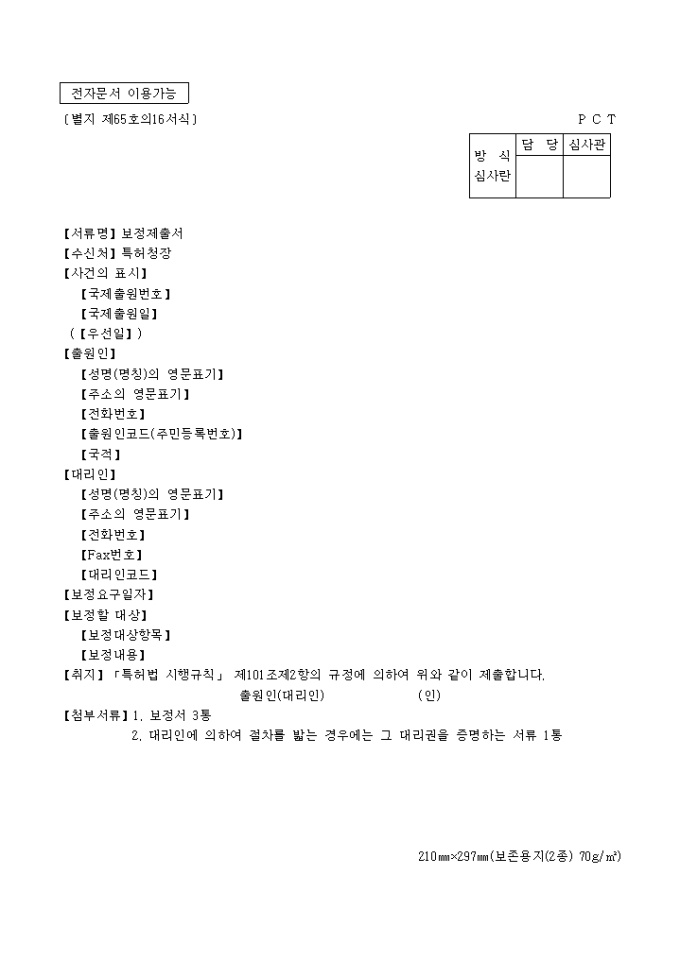 보정제출서(별지 제65호의16서식)