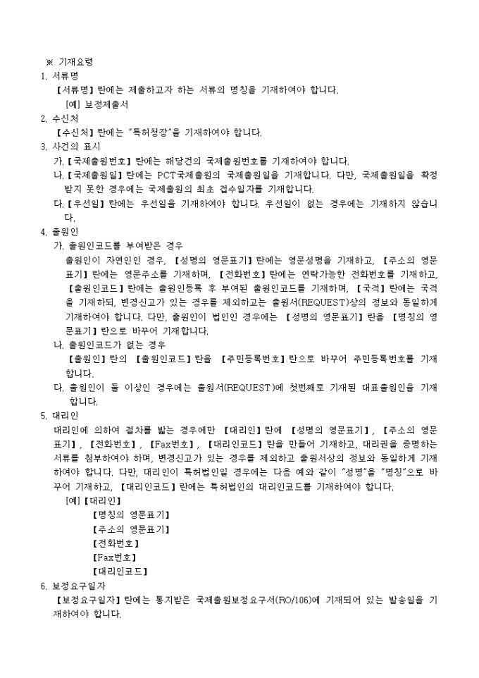 이 서식은 [별지 제65호의16서식]보정제출서로서 필요한 서류로는 보정서 3통, 대리인에 의하여 절차를 밟는 경우에는 그 대리권을 증명하는 서류 1통가 있습니다.