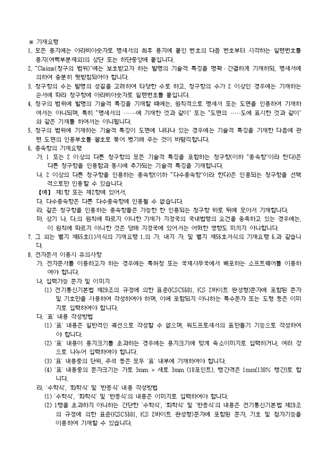 9,000원/월이 서식은 [별지 제65호의4(1)서식]CLAIMS로서 영문으로 작성되어 있습니다.