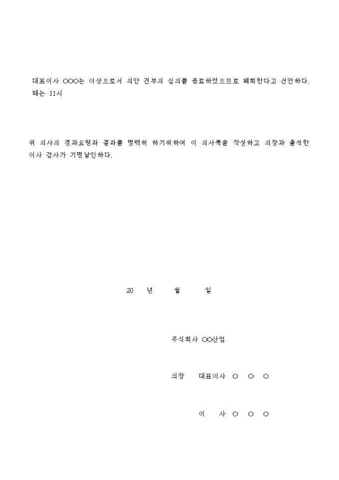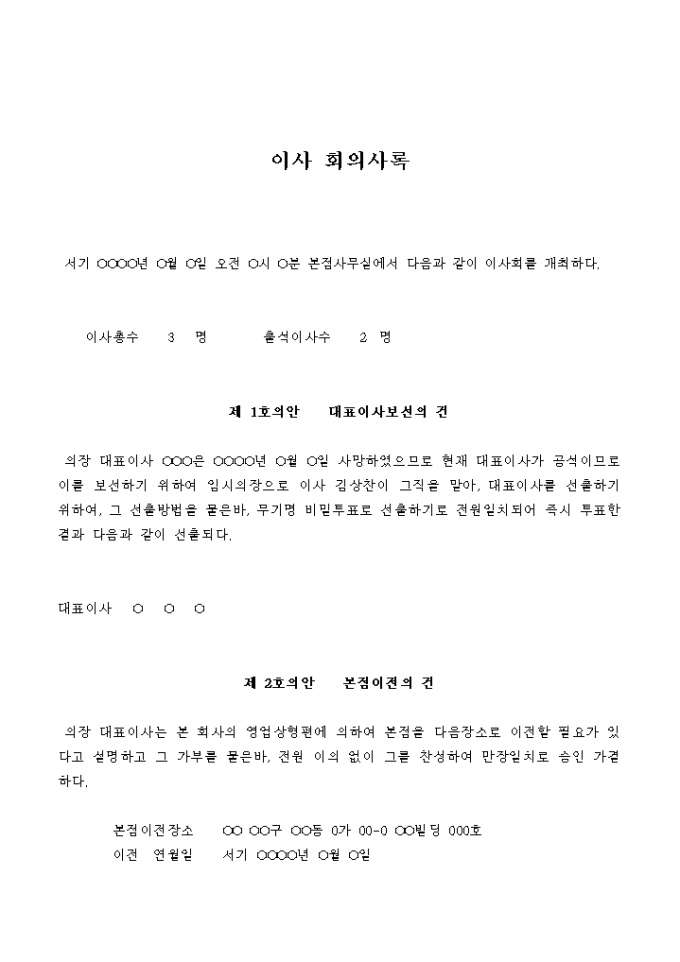 9,000원/월대표이사의 사망으로 인한 보선에 관한 사항을 의논한 이사회의 의사록입니다.