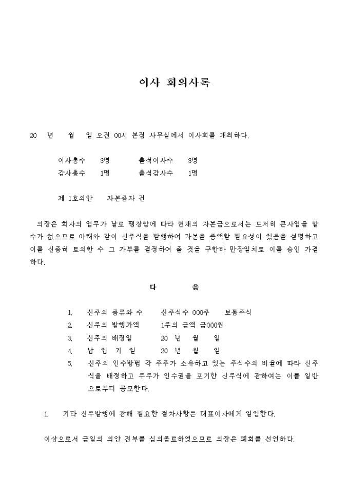 이사회 의사록(신주발행)