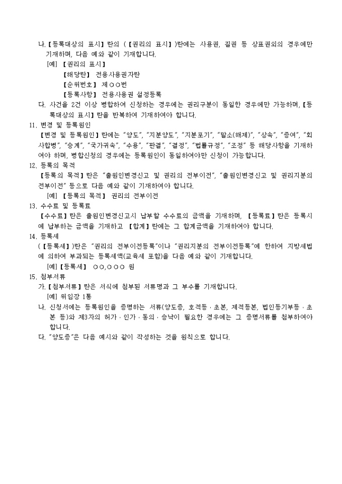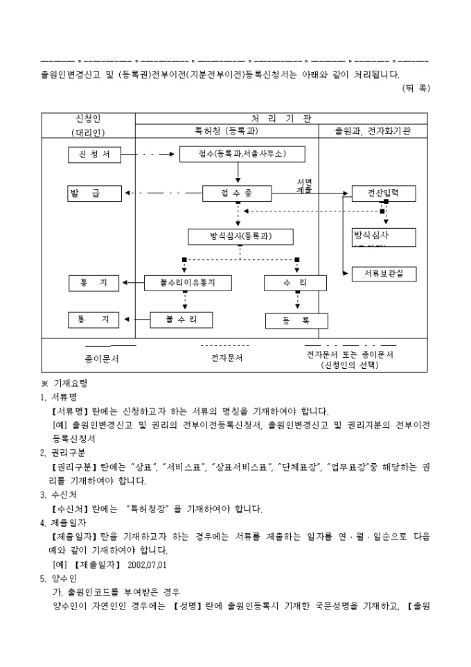 출원인변경신고 및(등록권)전부이전(지분전부이전등록신청서)(별지 제18호서식)