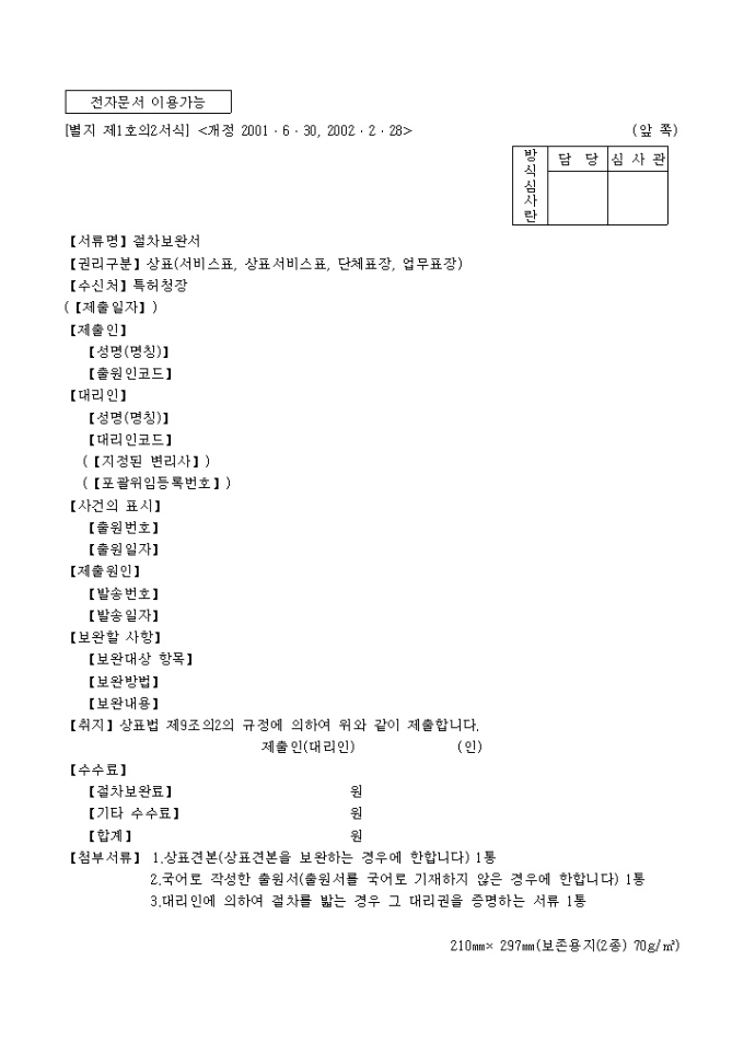 절차보완서(별지 제1호의2서식)