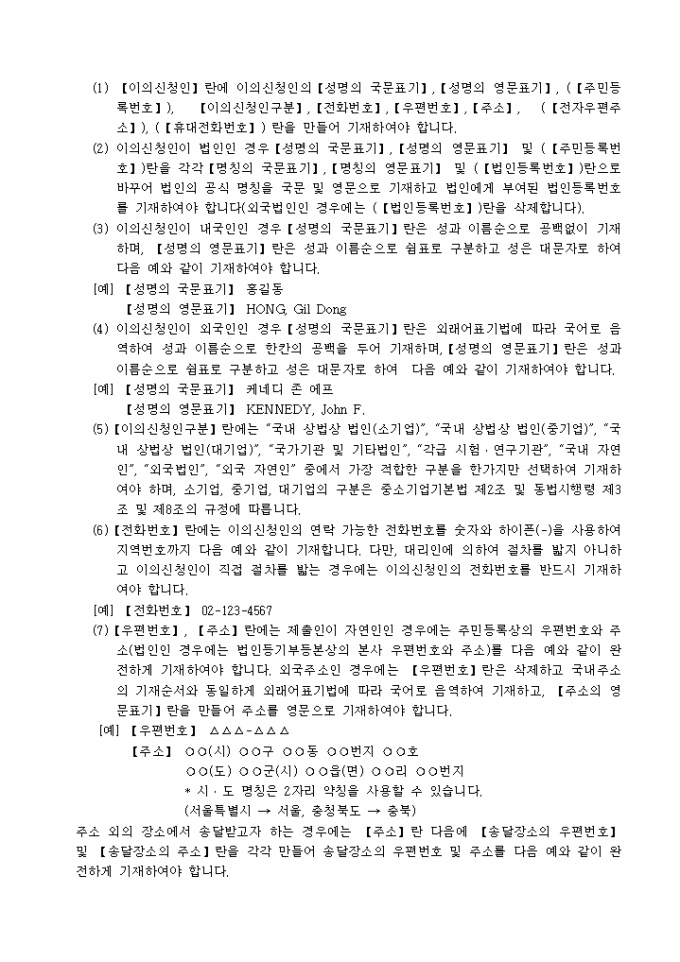 정당한권리자의(특허, 실용신안등록, 의장무심사등록)이의신청서(별지 제20호서식)