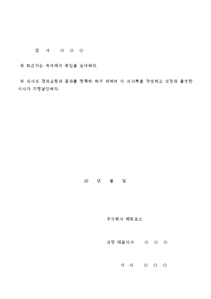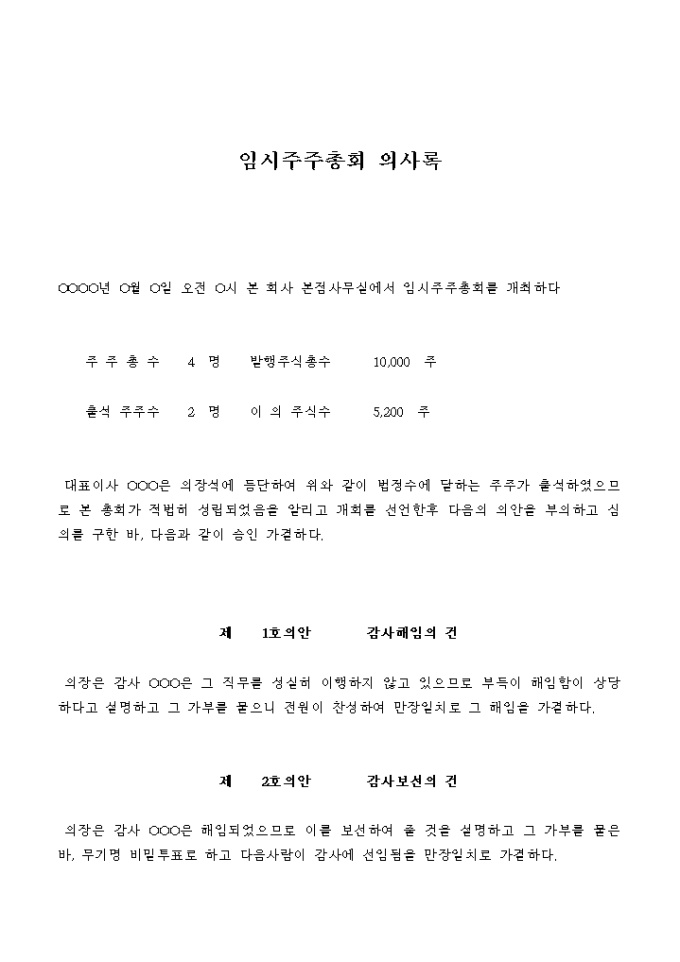 임시주주총회 의사록(감사의 해임 및 취임)