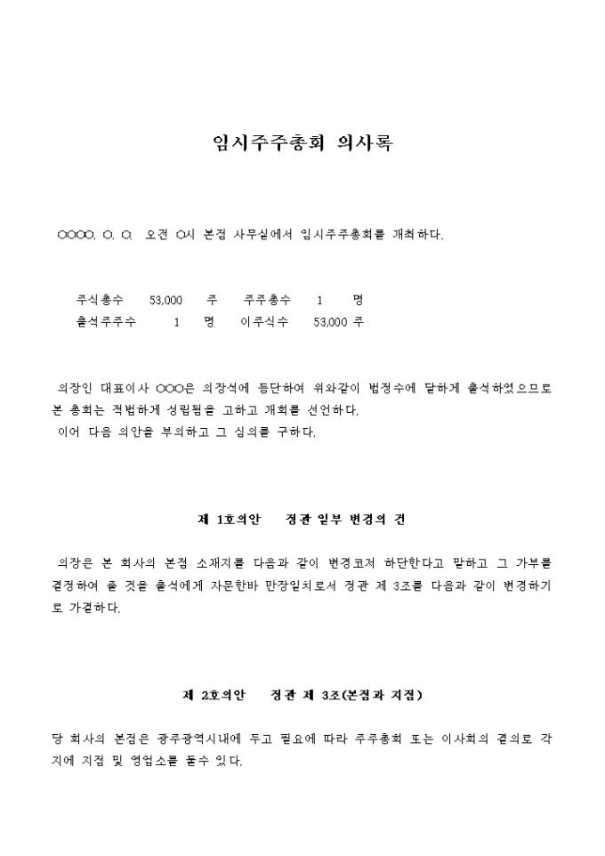 9,000원/월본점소재지의 이전을 결의하는 임시주주총회의 의사록입니다.