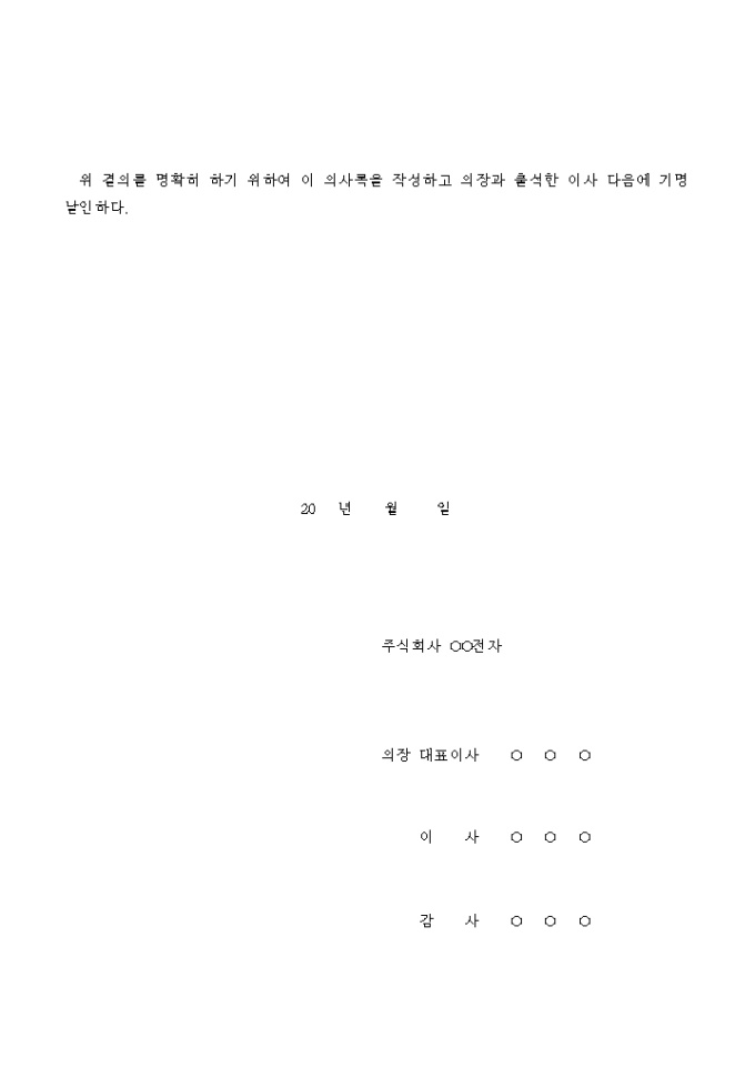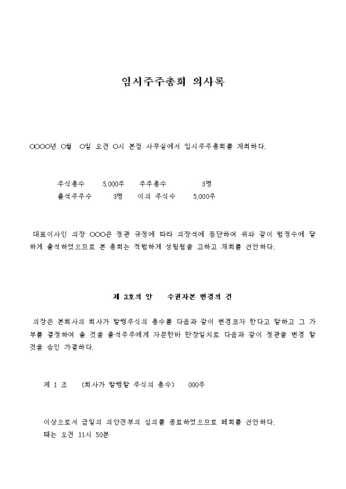 9,000원/월회사의 발행주식의 총수를 변경할 것을 결의하는 임시주주총회의 의사록입니다.