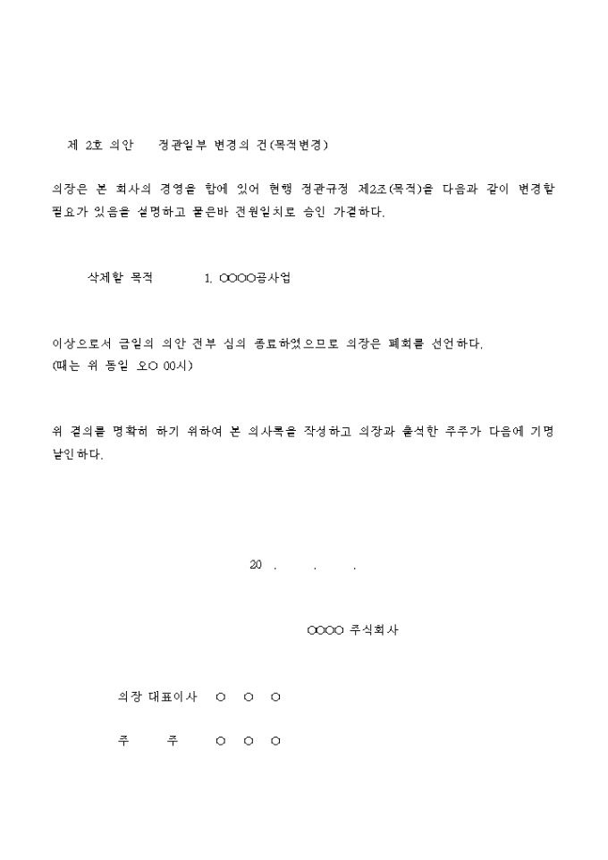 임시주주총회 의사록(이사보선, 정관일부변경)