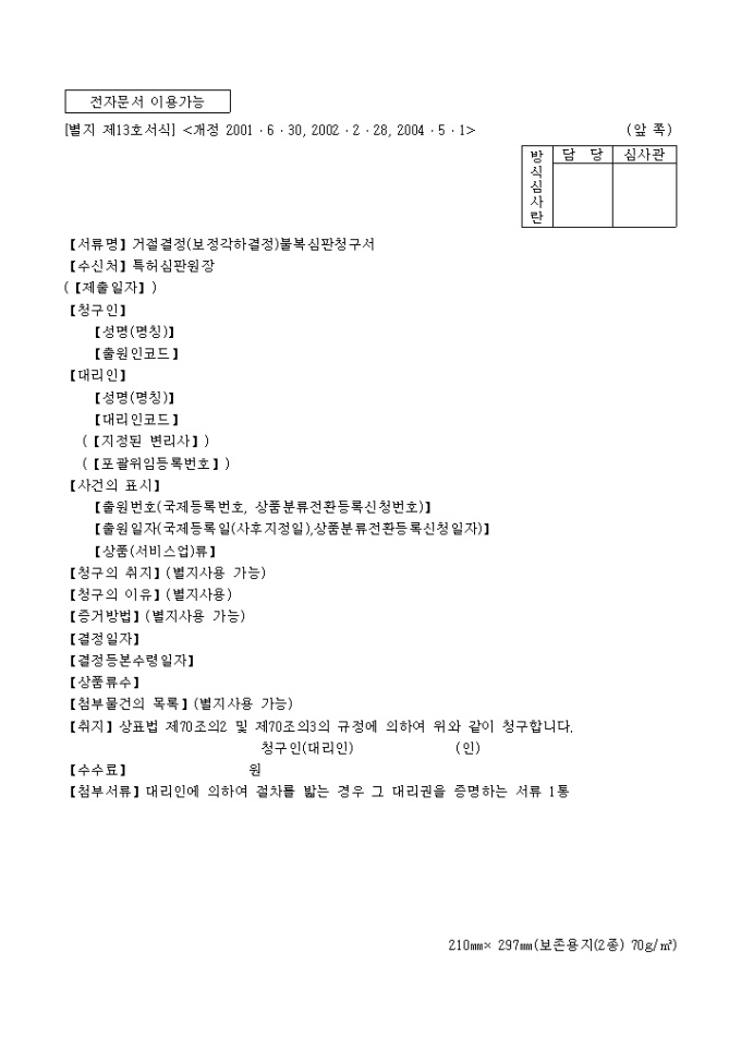 거절결정(보정각하결정)불복심판청구서(별지 제13호)