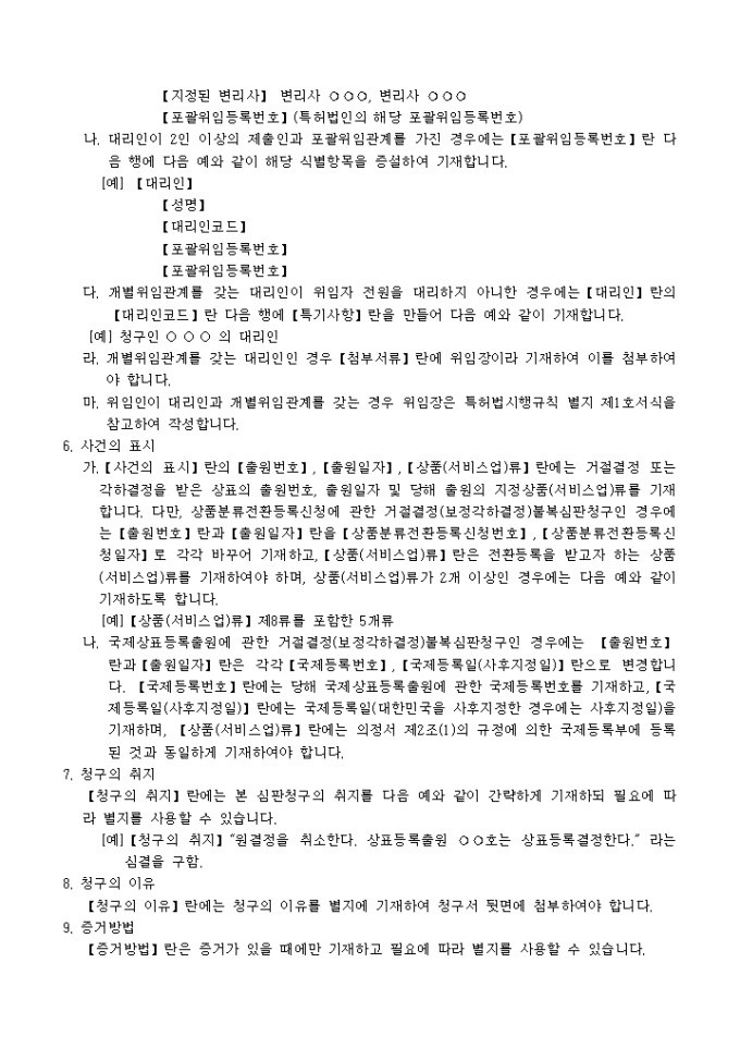 이 서식은 [별지제13호]거절결정(보정각하결정)불복심판청구서로서 필요한 서류로는 대리인에 의하여 절차를 밟는 경우 그 대리권을 증명하는 서류 1통이 있습니다.