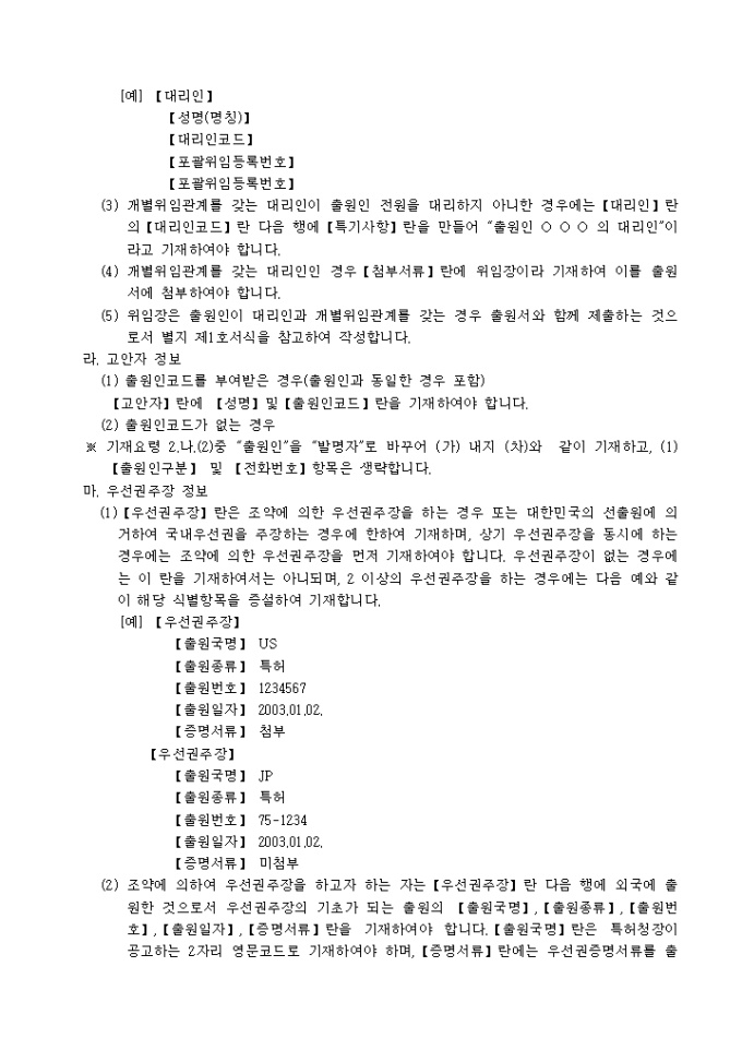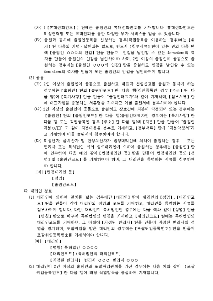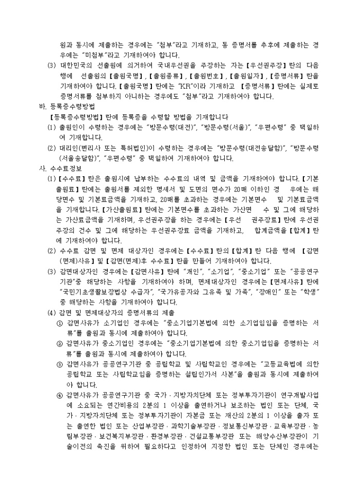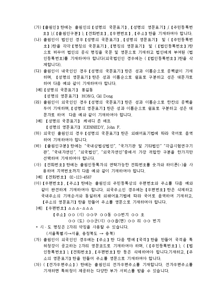 출원서 기재요령
