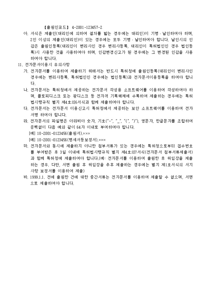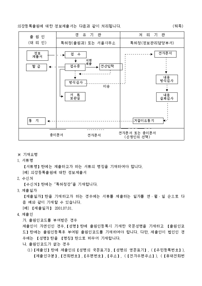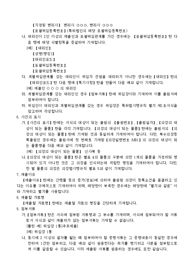 9,000원/월의장법 제23조의5의 규정에 의거한 의장등록출원에 대한 정보제출서 입니다. 간행물 등의 증거서류 1통, 대리인에 의하여 절차를 밟는 경우 그 대리권을 증명하는 서류 1통이 첨부되어야 합니다.