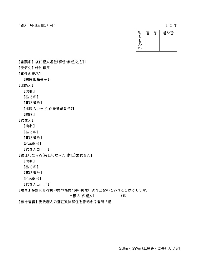 복대리인 선임(해임)에 관한 일어로된 문서입니다.
