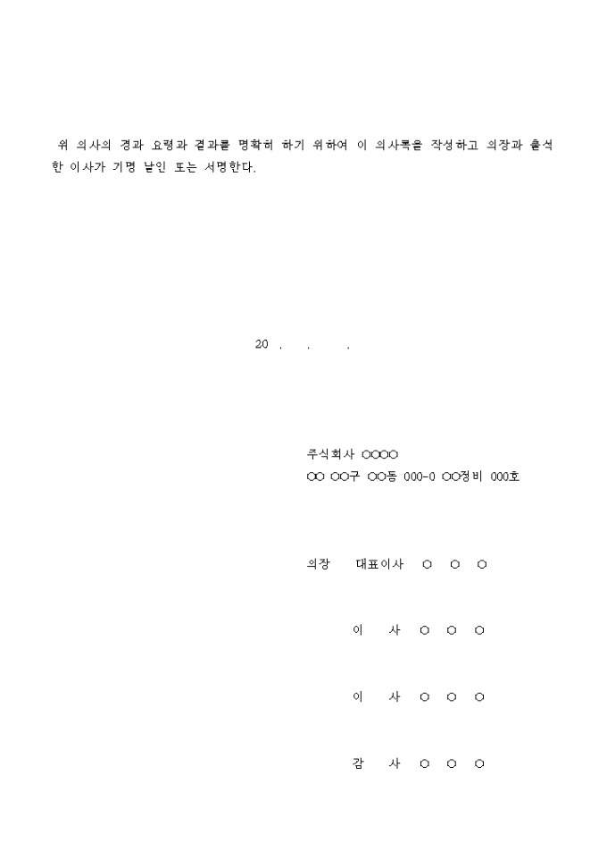 회사의 사업형편상 자본의 총액 금2억원 중 금1억원을 감소해야함을 이유로 자본을 감소할 것을 결의하는 임시주주총회의 의사록입니다.