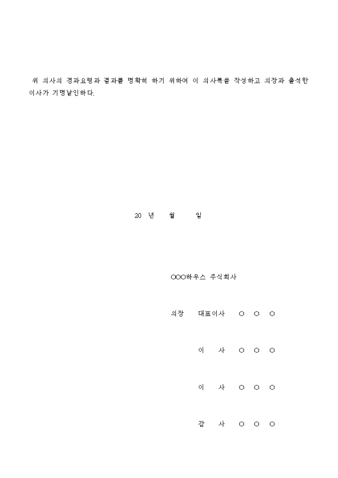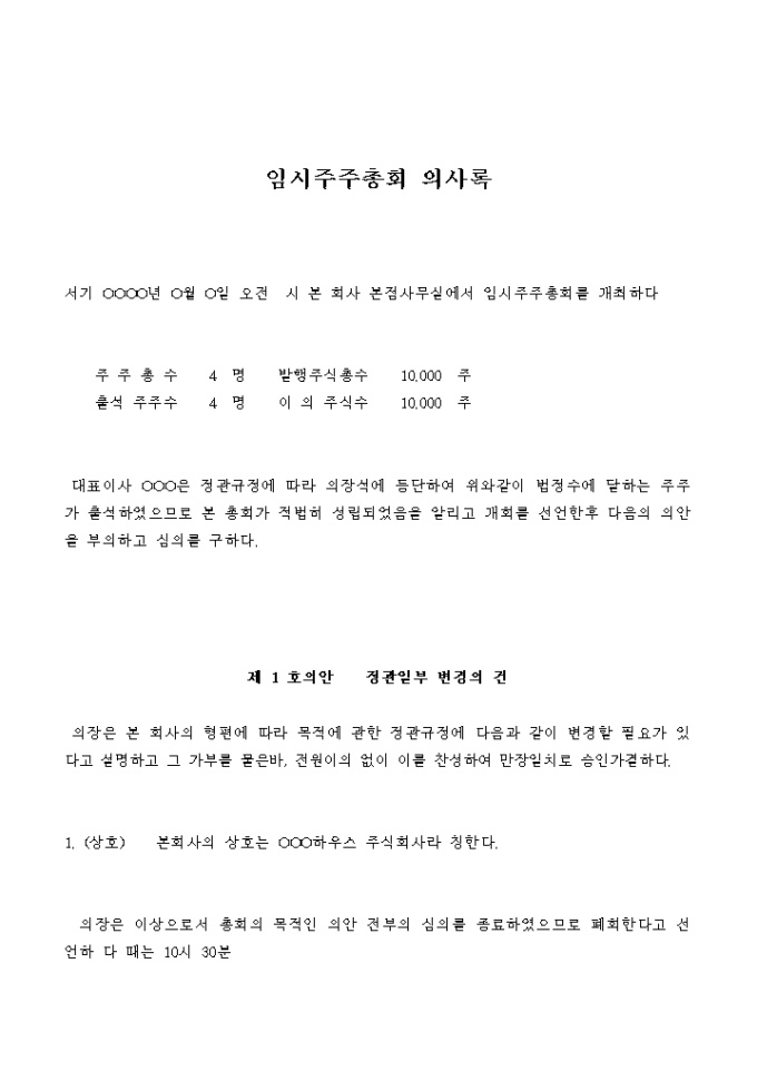 9,000원/월정관일부 변경을 결의하는 임시주주총회의 의사록입니다.