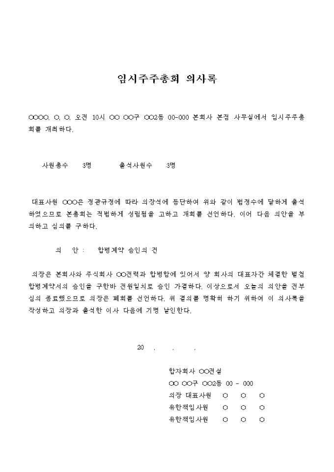 임시주주총회 의사록(합병계약 승인의 건)