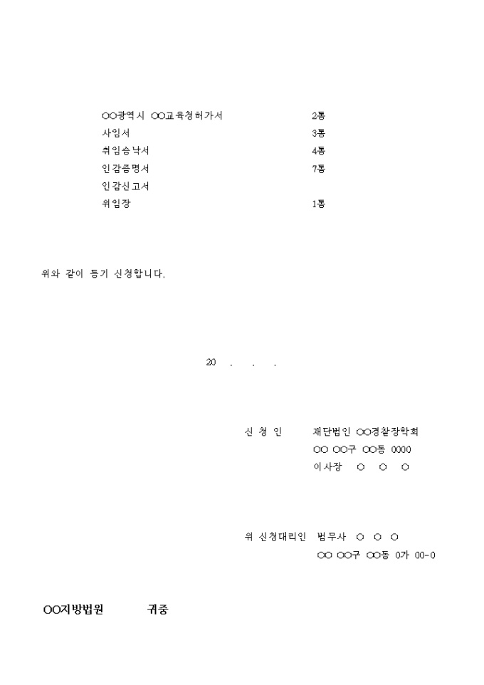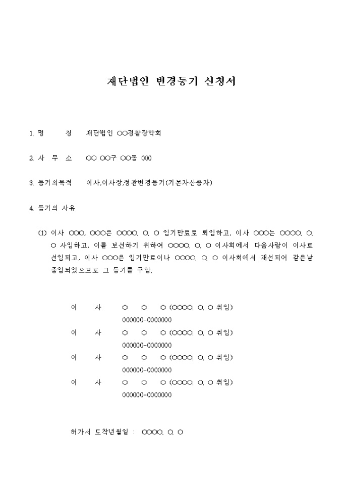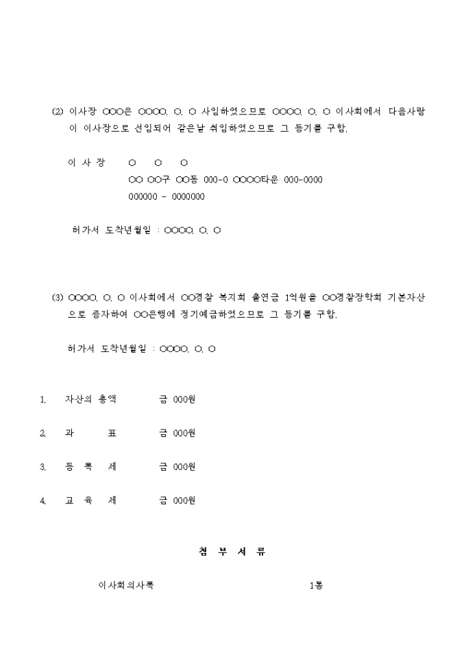 9,000원/월기본자산의 증가로 인한 재단법인 변경등기 신청서입니다.