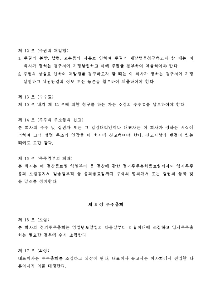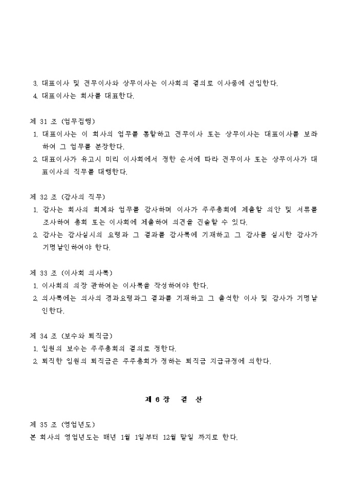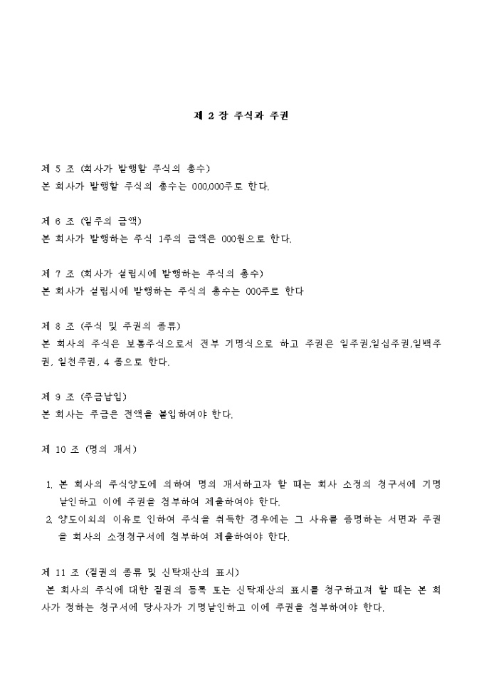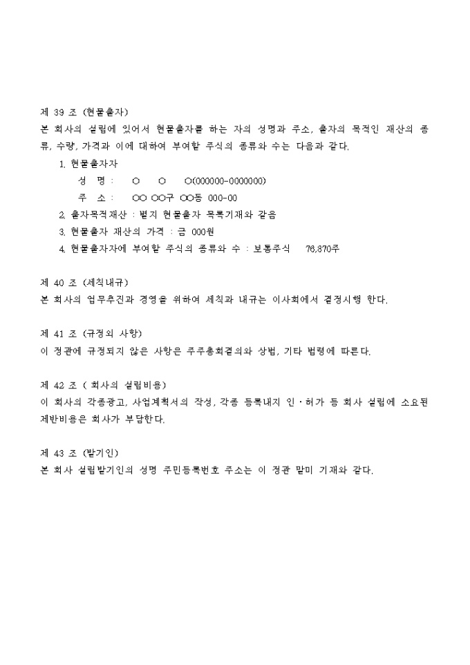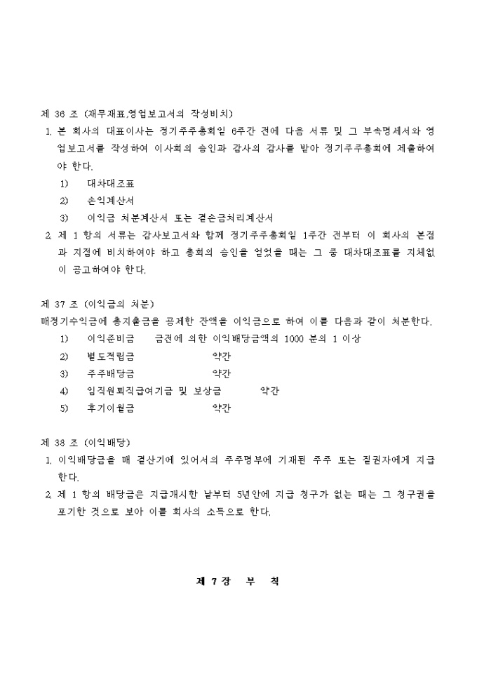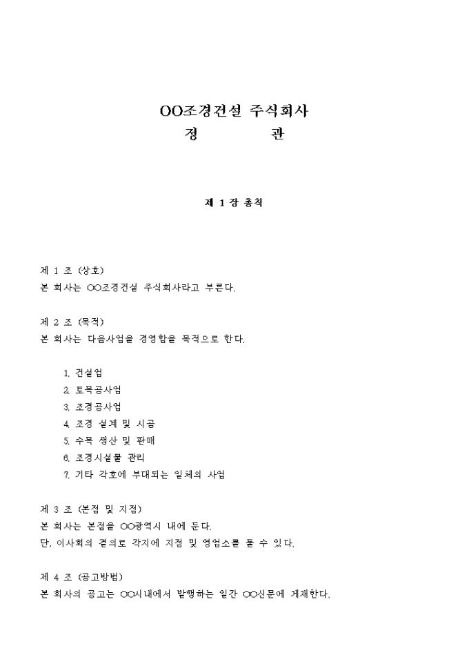 조경관련 건설회사의 정관입니다.
